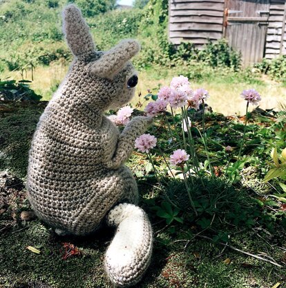He's nice and weighty due to the nature of crochet stitches and my yarn choices - I have crocheted with two and three strands together to achieve the tonal qualities similar to rabbit colourations.