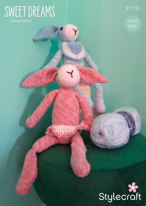 Crochet Bunny in Stylecraft Sweet Dreams DK - F110 - Downloadable PDF is a free Intermediate Crochet pattern by Stylecraft, available as a Downloadable PDF and includes instructions in English. Super fun to make, this pattern could be your next masterpiece!