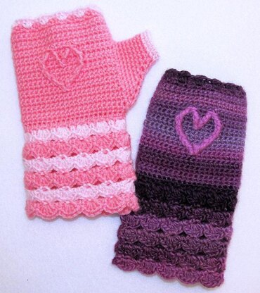 A Sweet Heart adorns these quick and fun crocheted mitts!
