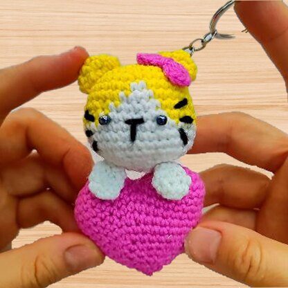 Crochet Cat & Heart Keychain – Amigurumi PDF Pattern + Video Tutorial