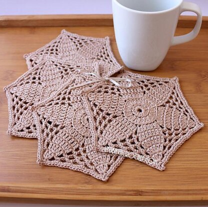 Crochet Coasters "Mosaic Flower" Crochet Pattern Instant Download PDF file with detailed step-by-step easy to follow instructions written in English (only), in American crochet terms.