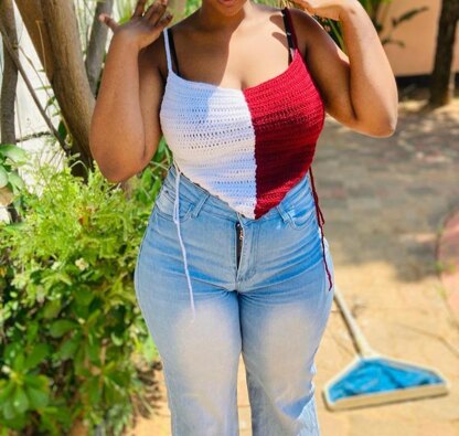 I made this pattern because I love corset tops but I wanted to challange myself to make something unique from the ones on the market. You can combine any two colors of your choice or you can use one color. My favourite part is that through adding and subtracting chains you can adjust the size.