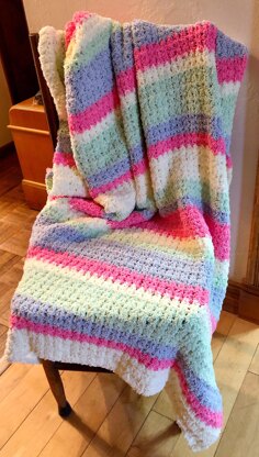 Add a pop of color to any room with this crochet cotton candy fluffy blanket. Easily create this wonderfully soft afghan. It is so soft and cuddly that you will want to snuggle under it all day. This stitch looks equally beautiful on either side which works perfectly when crocheting cozy blankets.