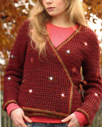 This is a Crochet Cardi worked in filet grid pattern, with contrast edges and optional embroidery. The pattern is available in both UK and US versions (US version available on Ravelry)