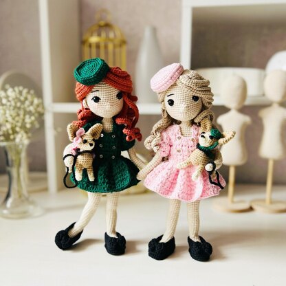 Crochet doll, amigurumi doll, crochet dog chihuahua, amigrumi dog, crochet doll clothes, Lady with dog