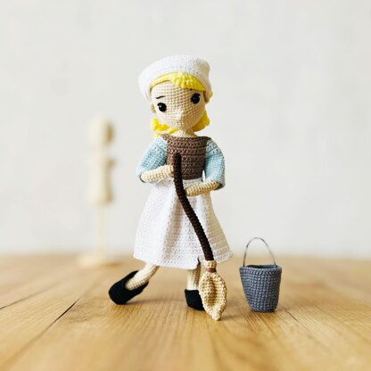 Crochet doll, amigurumi doll, doll with clothes, crochet doll outfit, Housemaid