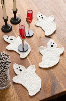 Crochet Ghost Coasters in Red Heart Super Saver Economy Solids - LW4461 is a free Crochet pattern by Red Heart US, available as a Downloadable PDF and includes instructions in English. Super fun to make, this pattern could be your next masterpiece!