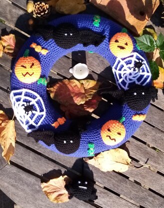 Crochet pattern for a spooky Halloween wreath and bunting.