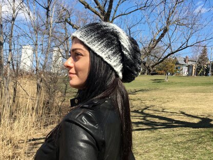 I love THIS hat. The crochet technique used is quite stretchy, so the hat stays on snug despite its lovely loose and slouchy look. It also has a nice "flat-lying" rounded top, unlike the sometimes bulky and lumpy slouchy hat tops that we see.