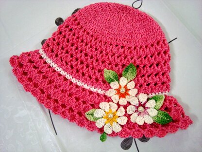 Crochet pattern for a beautiful spring hat, sun hat. A unique and beautiful hat in summer days is so much enjoyable. I designed the hat to make it more airy for those sunny days. I used Droplet Stitch( original) which gives a superb texture and firmness to the hat. Use your favorite color and add as many flowers,leaves you like to decorate it. Flower pattern is also included.