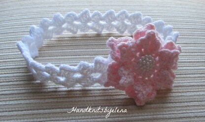 This adorable headband is a very easy and fast project, wonderful gift for a baby girl! The band is made sideways, so the gauge is not important.