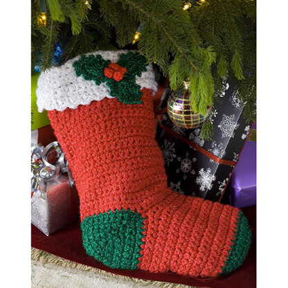 Crochet Holly Stocking in Red Heart Holiday - LW1871EN - Downloadable PDF