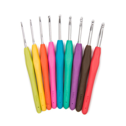 Stitch markers, stitch holders, tapestry needles, scissors, tape measure, row counter and 9 crochet hooks in sizes 2mm, 2.5mm, 3mm, 3.5mm, 4mm, 4.5mm, 5mm, 5.5mm, 6mm.