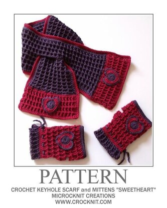 Crochet Keyhole Scarf and Mittens "Sweetheart"