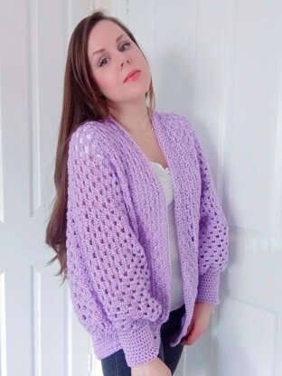 This crochet cardigan is slightly oversized. This is a very inclusive pattern, with sizes ranging from S to XXXXXL.