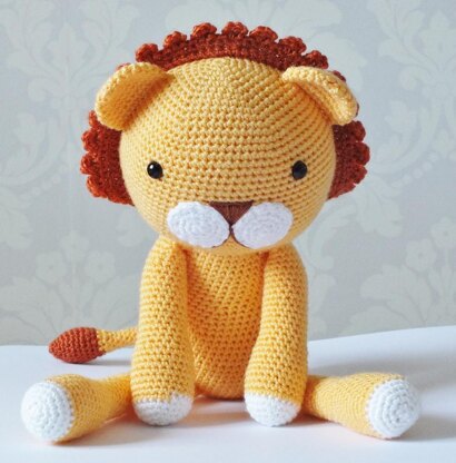 This Adorable lion is my own design, when finished he measure's approx 18" tall ( when using D.K yarn and 3.5mm hook)