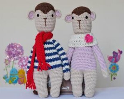 This adorable monkey is my own design, when finished measure's 14" tall. (when using the recommended yarn and hook)