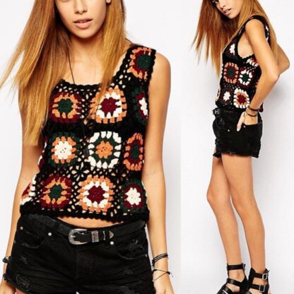 What do you do with all of your scrap yarn? If you save it up for a rainy day, how about using it to make this granny square top instead!