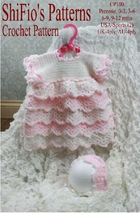 Crochet Pattern baby dress & hat UK & USA Terms #100