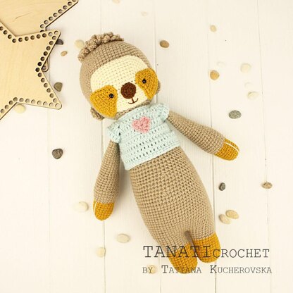 Sloth – size 34 cm (13 in), if using Fingering weight yarn (Fingering (14 wpi), 1 : Super Fine). Skill Level: Intermediate