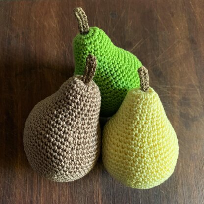 A cute pear pattern for young kids to play with or as a decorative item in the home. I also have other play food projects listed.