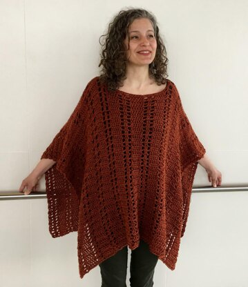This poncho is made from TWO RECTANGLES stitched together, leaving room for the head / neck. It’s EASY! It is such a simple design, yet such a great look.