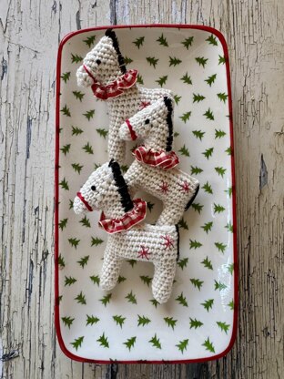 Whether made as a Christmas tree decoration, a stocking filler, a Christmas table place setting or to hang on a Winter wreath or garland you will find that once you have made one of these little crochet Scandi horses you may find yourself with a small herd before you know it!