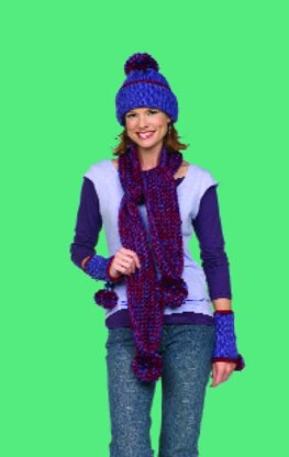 Crochet Scarf Hat & Wristlets in Red Heart Soft Solids - LW1535