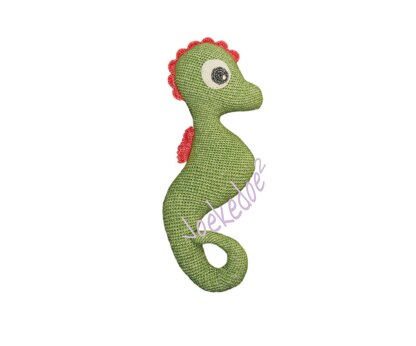 This seahorse belongs to a series: Joekedoe. There are 2 Joekedoe books with each 10 patterns. They are both available on Amazon. You crochet each Joekedoe in one piece, that means there's little sewing involved. You need maximum 100 grams of Stone Washed by Scheepjeswol. This is a Dutch yarn brand, the details are in the 2nd picture. You can of course use any yarn of your choice: your Joekedoe will only be larger or smaller. These Joekedoes are all safe for children. The details for this seahorse pattern: 95 gram You will also need some left overs for finishing off. Measurements: 51 cm x 19 cm Pattern in pdf, 16 pages. With a lot of photos and extra tips. The pattern is written in US terms, but I have added a conversion chart for UK terms.
