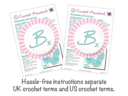 Easy-to-follow A4 digital pdf download is available instantly, forever, and is easy to print. Includes UK and US crochet terms, plus how-to tutorial and diagrams to help you make up the pinwheel.