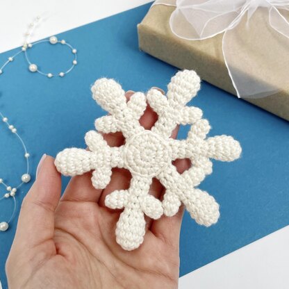 The finished crochet snowflake are about 10 cm (4 inches) in diameter.