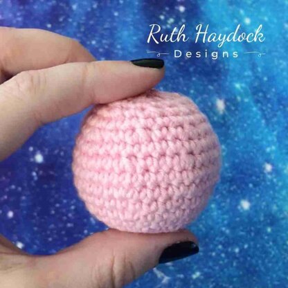 This pattern makes a perfect little sphere that is just the right size for a juggling ball. It’s very quick to make and uses small amounts of yarn.
