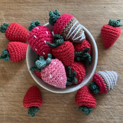 Included a: - PDF pattern for strawberries (seeded, plain and chocolate dipped) - Simple instructions (US terms) - Photos of each stage