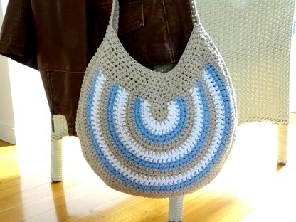 I have designed the bag in three pieces. A front and a back section, which are identical, and a long circular piece which forms the strap. The strap wraps around both sides of the bag giving it strength and durability. For this pattern I have used a 10 ply chunky cotton/acrylic.