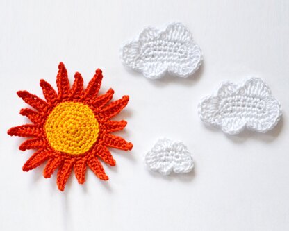 Crochet Sun. Clouds Applique. Sky Motif. Sew on Embellishment