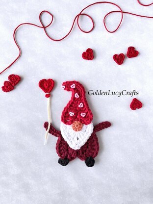 This pattern is for a Valentine's Day Gnome applique. The pattern also includes instructions for the heart balloon and small heart.
