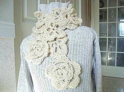 This pattern makes a scarf that is 48 inches long, but make it shorter or longer by adding or removing rosettes. It's all up to you!