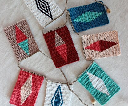 With this basic tutorial you learn to crochet diamonds/harlequins/triangles with clear lines - and can for example make a diamond bunting if you like. The pattern is available in Finnish and English.