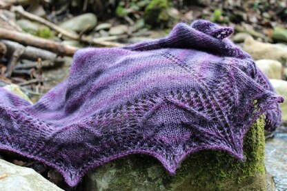 Crocus Garden is a triangular shawl with a garter stitch border worked from the top down using just one skein of a gorgeous sock yarn for size S and two skeins for size L. The stockinette stitch body shows up the beautiful color changes in the yarn, however, if you want to emphasize the crocuses, use a non-variegated yarn to direct more attention to those lovely flowers on the edging.