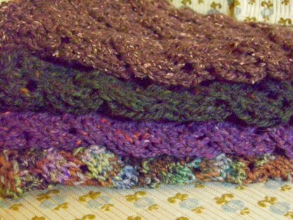 This comfy Crofter’s Cowl is worked in a Shetland lace pattern with great stitch definition. Two halves are worked in the round then grafted together providing a mirror image of the Horse shoe lace. Something to take the chill off the neck for those long cold days of crofting! Skills needed, casting on/off, grafting, simple lace pattern. A good pattern for a confident beginner to try out lace knitting. Pictured in Malabrigo Worsted, colour Azul Profundo.