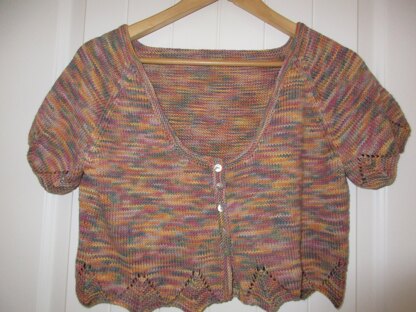 This is a pattern for a cropped lace edged cardigan, originally published in Knitting magazine. It is a cropped shape, with a lace motif on the hem and cuffs. Length 39-42.5 cm. Photo on model Lauren Guilfoyle for Knitting magazine.