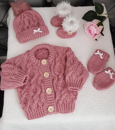 My Irish roots have inspired my love of the Aran style of knitting and I have introduced a modern twist to my creations. Some experience is required to knit this beautiful pattern and it is suitable for a boy or girl.