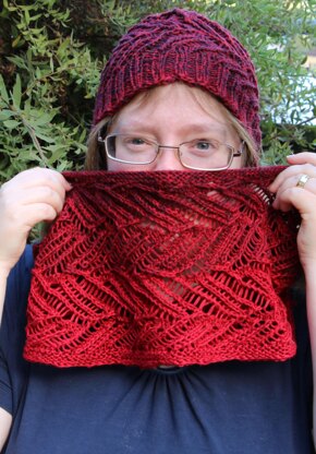 Materials: Wollcandy Cotton Blend Gradient (150 g [5.3 oz], 550 m [600 yd], 50 % cotton, 50 % polyacryl), 1 yarn cake in colorway Chianti. This is enough for the cowl and the hat. Or 150 (295) m [165 (325)] yd fingering weight yarn of your choice for the cowl. 3 mm [US 2.5] needles for your favorite method of knitting in the round (or a needle size needed to get gauge) 1 stitch marker