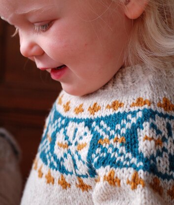 This garment is knit seamlessly from the top down, featuring a stranded colorwork section around the yoke. The yoke is a hybrid circular/raglan for an optimal fit. The pattern also gives the option to work a few short rows at the back neck for a more fitted neckline. The yoke is worked in the round to the underarms, then the sleeves are put on hold, and the body is worked in the round to the hem. Lastly, the sleeve stitches are returned to the needles and worked in the round to the cuff. Please note: the colorwork portions are charted only. One round in the colorwork section requires three-color stranding (the rest uses two-color stranding)