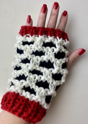 These are really fast and easy fingerless mittens to knit - using the mosaic technique, knitting colour work is fast and fun! This pair was inspired by Cruella with lots of texture and spots!