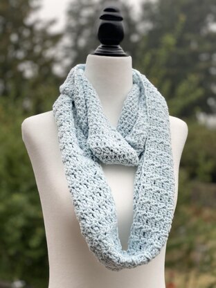 The Crystalline Infinity Scarf is a soft and warm feminine scarf. The pattern uses basic stitches for lots of texture
