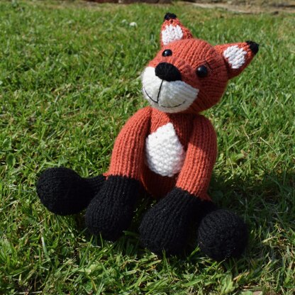 Cubby is a cute and smiley fox. This toy uses simple increases and decreases for shaping, and uses intarsia knitting, stripes and Swiss darning (duplicate stitch) for colour-work. Designed by Amanda Berry @fluffandfuzz, this fox is knitted in acrylic DK yarns on single pointed needles (not in the round). For confident beginners and above, other techniques used include casting on and off, knits, purls, increases and decreases, and seaming to finish. This fox is 18cm tall (when seated).