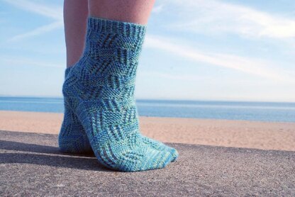 Inspired by cubist architecture, these top-down socks feature a bold, easily memorised lace grid. The blocks build on each other to form a fun, comfortable and wearable lace sock. A quick and easy garter stitch heel blends beautifully with the lace grid.