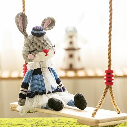 Size: The finished Judy Bunny stands approx. 45 cm, 17.7 inches tall (sitting state about 30 cm). Certainly, the thinner yarn you use, the smaller the doll will be.