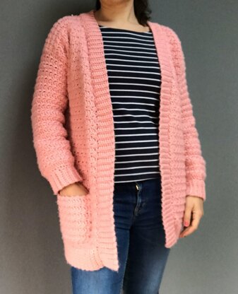 Cosy on down with this super squidgy cardigan, wrap yourself up and banish those winter blues. Using simple stitches and decreases and finished with ribbing. It's the perfect winter warmer that you will never want to take off.